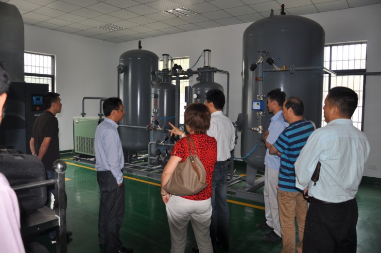 葉總工程師一行首先深入庫區(qū)查看了氣調(diào)倉的氣囊狀況、空倉的地坪澆筑工程進度、氮氣房制氮設(shè)備。詳細詢問了新倉房的設(shè)計、造價、性能和智慧糧庫的運用,特別是與傳統(tǒng)藥劑熏蒸殺蟲儲糧的比較等情況。當聽說新的閣樓式高大平房倉結(jié)合氮氣氣調(diào)、空調(diào)控溫等智慧糧庫技術(shù)能確保晚粳谷安全儲存2年以上時,要求及時做好總結(jié)。在會議室,觀看了我?guī)熘悄芑到y(tǒng)的演示和講解,對糧情測控和充氮氣調(diào)模塊的日常使用及效果進行了深入探討。