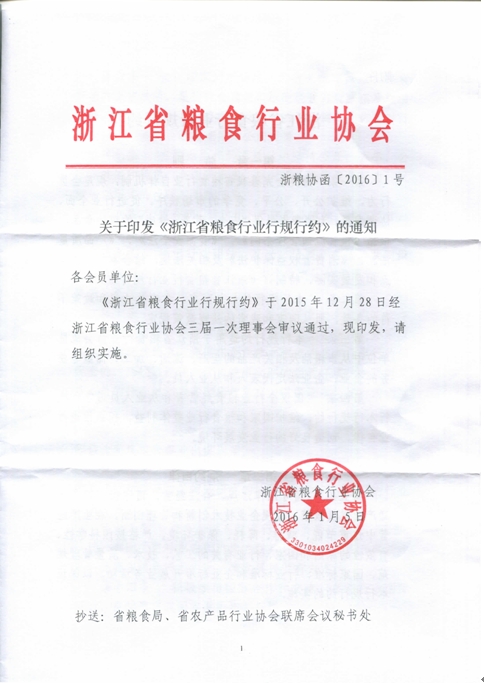 關(guān)于印發(fā)《浙江省糧食行業(yè)行規(guī)行約》的通知