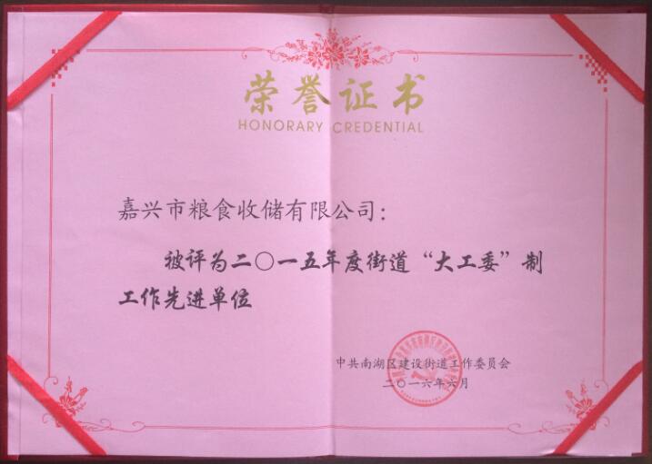 公司被評為2015年度街道“大工委”制工作先進(jìn)單位