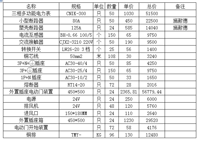 3、此次功能提升需滿足能耗單獨(dú)分倉(cāng)計(jì)量,要求配電柜內(nèi)用電為兩路供電至插座箱,同時(shí)設(shè)置智能計(jì)量電表2只(其中3廒間倉(cāng)房為3只),實(shí)現(xiàn)分倉(cāng)單獨(dú)能耗計(jì)量,用電功率按照設(shè)備功率要求配備,品牌與原配電柜內(nèi)元器件品牌一致。插座箱內(nèi)設(shè)置8只(3廒間為12只)工業(yè)航空插座,每路設(shè)置3只40A和1只25A工業(yè)航空插座,共設(shè)兩路。同時(shí)配備兩只四線漏電保護(hù)器,全自動(dòng)轉(zhuǎn)換倉(cāng)位。