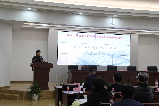 12月28日上午,由嘉興市糧食局主辦,嘉興市糧食收儲公司、嘉興市軍糧供應(yīng)站承辦的糧食安全應(yīng)急預(yù)案暨軍糧應(yīng)急保障演練工作在我公司中心糧庫舉行。嘉興各縣(市)分管局長、調(diào)控科長;收儲(購銷)公司負(fù)責(zé)人、軍糧供應(yīng)站負(fù)責(zé)人以及各應(yīng)急加工、運(yùn)輸企業(yè)負(fù)責(zé)人參加此次演練會議,市糧食局副局長黃根松蒞臨現(xiàn)場并作致辭和總結(jié),市應(yīng)急辦副主任鄧輝就如何應(yīng)對突發(fā)公共事件等方面進(jìn)行專業(yè)培訓(xùn),會議由購銷調(diào)控處處長俞菊榮主持。