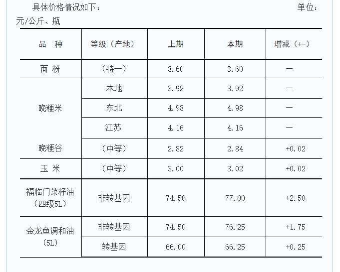 據(jù)監(jiān)測,2022年4月19日~5月4日,市區(qū)成品糧大米、面粉批零價格基本穩(wěn)定,市場銷售數(shù)量趨于平穩(wěn)。從近期晚粳稻谷拍賣市場行情分析,原糧晚粳稻價格呈現(xiàn)小幅上漲態(tài)勢。受新冠肺炎病毒影響,目前糧油物流運輸渠道仍未完全暢通,運輸成本上漲波及飼料玉米、食用油市場價格抬高。